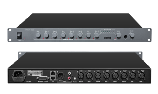 4.自動(dòng)混音器能有效的防止會(huì)議進(jìn)行過程中突如其來的強(qiáng)聲源(如集體掌聲、打碎物品聲等)的沖擊而造成的大范圍“嘯叫”現(xiàn)象出現(xiàn)。使系統(tǒng)能穩(wěn)定使用,得到保護(hù)。
